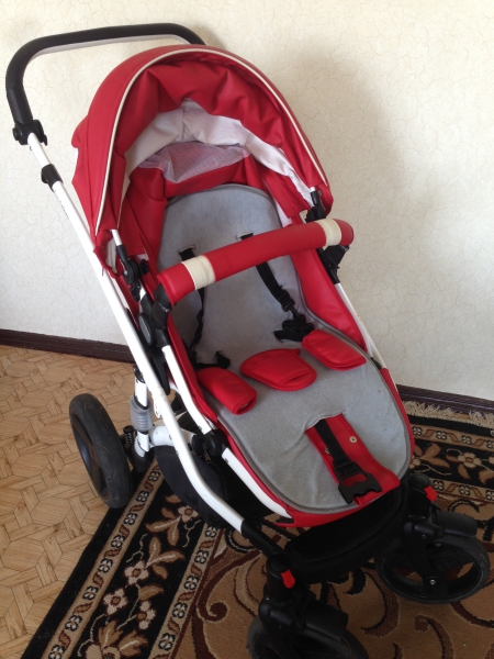 Люльки можно зафиксировать к себе лицом и от себя.Руль-ручка регулируется. Колеса полиуретановые, в отличном состоянии- не нужно подкачивать, прочные, особенно для наших дорог!) Имеются так же амортизаторы: на основной раме (где крепятся люльки) и на задних колесах. Есть тормоза и фиксаторы передних колес.