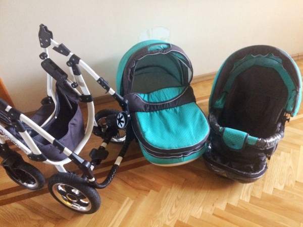 Комплектация: люлька для ребенка; прогулочный блок; рама; сумка для принадлежностей; ремни безопасности, антимоскитная сетка, дождевик, колеса с поворотным механизмом, регулятор высоты ручки.