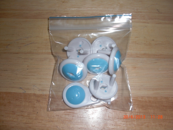 4. круглые заглушки с ключиком, 6 заглушек в упаковке (белые с голубым), подходят для для евророзеток (фото 7–9) — 30 грн. блистер.