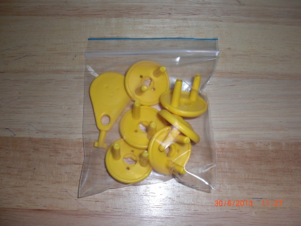 3. круглые заглушки с ключиком, 6 заглушек в упаковке (жолтые), подходят для всех видов розеток (фото 4–6) — 28 грн блистер.