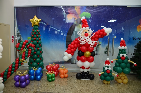— воздушные фигуры Дедушки Мороза, Новогодней елочки, Снеговиков