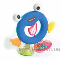 Погремушка напоминает смешного человечка, который принимает любые позы и выражения за счет вращения вокруг своей оси и перемещениявверх-вниз рук, ног и глаз. В игрушке разнообразные игровые элементы: