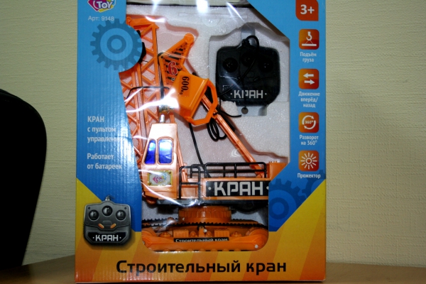 8.Кран на дистанционном управлении. Работает от батареек. Функции: поднимает груз, разворот на 360 градусов, прожектор, движение: вперед, назад. Размеры: 37*31*17см. Цена: 170,00 грн.