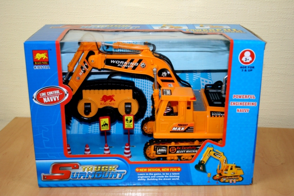 3. Экскаватор на дистанционном управлении. Работает на батарейках. Функции: работает ковш, движение вперед назад, вправо,влево, поворот кабины на 360 градусов.Пульт д/у и экскаватор соединены шнуром. Цена: 95,00 грн.