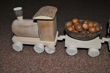 Такие игрушки как паровозики и машинки открывают для ребенка мир техники, знакомят с законами движения, побуждают к экспериментированию и поиску ответов на познавательные вопросы (почему крутятся колеса, как едут вагончики и т.д.). Строительные и конструктивные материалы, перевозимые вагончиками поезда призваны развивать детское конструирование и техническое изобретательство. Таким образом наш паравозик с вагончиками из природных материалов стимулирует развитие технического мышления, формирует представление о профессиональной деятельности взрослых и просто приносит удовольствие Вашему малышу.
