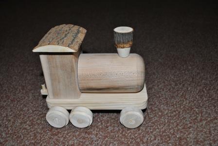 Паровозик изготовлен из сосны и дуба. Комплектуется четырьмя вагончиками разной конструкции. В каждый вагончик можно положить стройматериалы только определенной конструкции, что способствует изучению форм ребенком. Вагончики изготовлены из сосны, березы и скарлупы кокосового дерева. Все детали тщательно отполированы и подогнаны. Наши игрушки не имееют никаких металлических креплений. Все детали изготовлены только из дерева. Движение паровозика осуществляется в обе стороны. Есть специальные крепления для вагончиков.