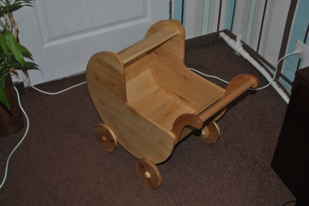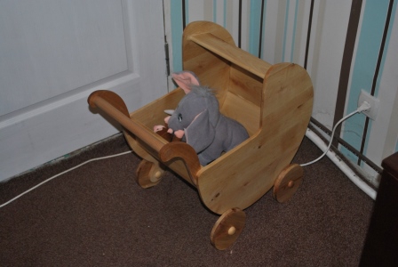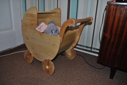 Коляска для кукол тщательно отполирована и не имеет острых углов, прочна и долговечна в использовании. Все детали и соединения изготовлены только из дерева.