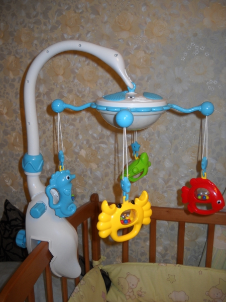 Продам мобиль с кучей всяких функций: ночник,проэктор, 4 вида музыки, таймер, датчик плача(включается музика, если ребенок плачет(отключается), пластмасовые игрушки, которые сделаны как погремушки. Крепится все это дело на крепеж в виде лебедя. Скину дополнительные фото по запросу.