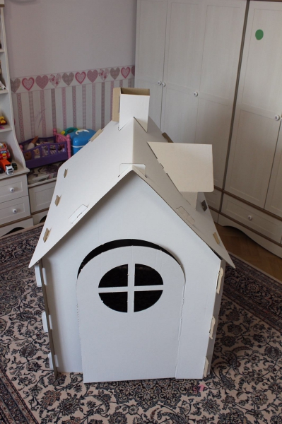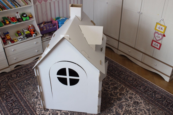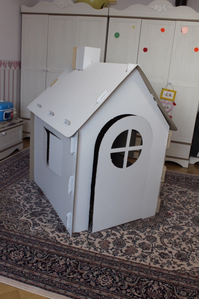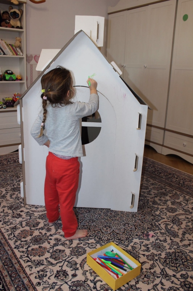 Игровой домик из картона предназначен для детей от 2-х до 10-ти лет. Такая игрушка надолго займет внимание ребенка, в нем можно играть, его можно раскрасить маркерами и красками. Кроме того, иметь свой собственный домик ― заветная мечта многих детишек.
