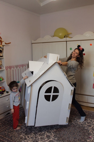Картонный домик можно использовать как дома, так и в детских садах, детских центрах развития и других учреждениях.