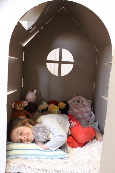 Домик изготовлен из гофрокартона повышенной прочности (толщиной 7 мм), поэтому он невероятно долговечен.