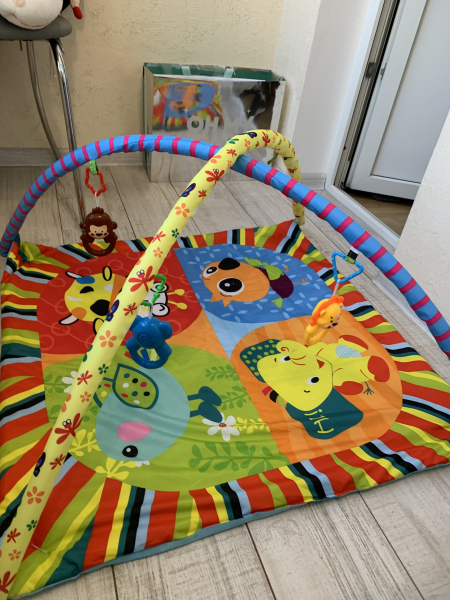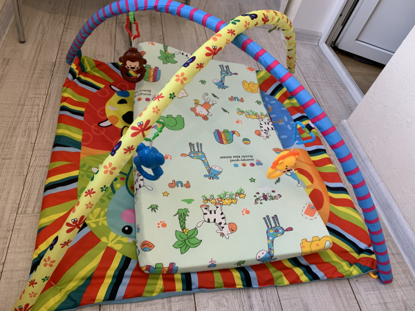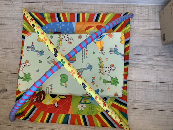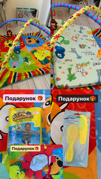 Іграшковий килимок для малечі. В хорошому стані. Віддаємо разом з матрасиком. Кріпиться все дуже легко і складається так само. Гребінці, шляпку для купання і трусики для плавання у подарунок.