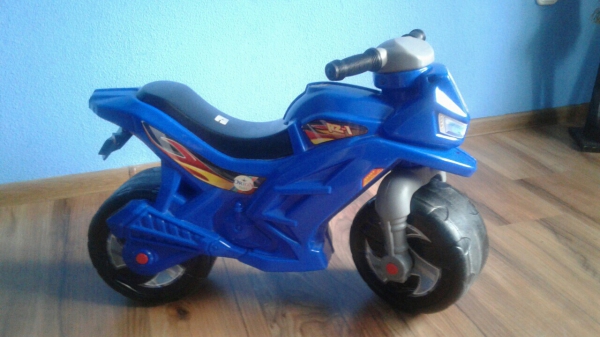 Без острых углов, устойчив, даже без «водителя» (конструкцией предусмотрено расположение центра тяжести игрушки таким образом, чтобы мотоцикл не падал). Удобное сиденье обеспечивает комфортное расположение ребенка. Имеет оригинальный дизайн, яркие цвета. Мотоцикл каталка обязательно станет любимой игрушкой Вашего малыша. Большое удовольствие доставляет ребенку самостоятельно оттолкнувшись ножками, прокатиться с ветерком по комнате или детской площадке — почувствовать себя настоящим гонщиком.