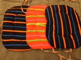 Верхняя часть подушки – микровельвет, полностью хлопчатобумажная, приятная к телу, теплая и мягкая, а непромокаемая ткань с обратной стороны защитит от влаги. С четырех сторон подушек длинные завязочки, чтобы фиксировать подушку – за спинкой и под сидением.