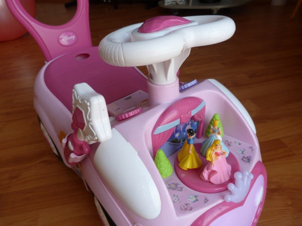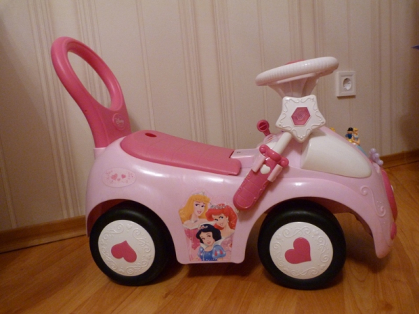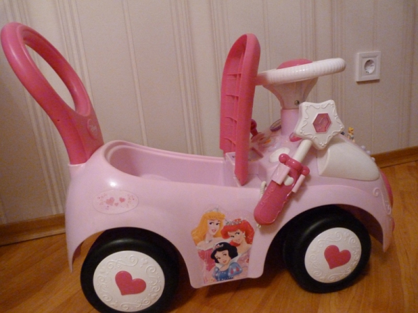 для маленьких принцесс, выполненный в стиле популярного мультфильма студии Disney, развлечет малышку мигающими огоньками, приятными мелодиями, забавными звуками, а также реалистичными звуками двигателя и сигнала.