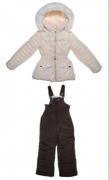 Детский зимний комплект для девочки состоит из курточки и полукомбинезона. Куртка приталенная на молнии. Капюшон не съемный с искусственной отстегиваю...
